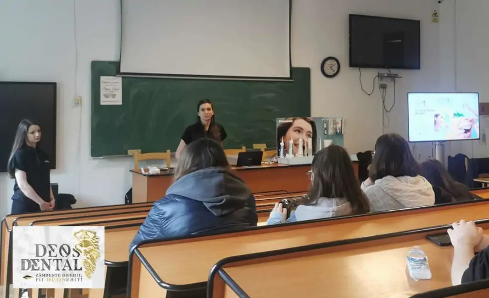 Una dintre unitățile de învățământ vizitate de medicii Deos Dental în luna aprilie a fost Colegiul Național Spiru Haret. Acolo, Dr. Mădălina Radu și Dr. Anca Marica au explicat atât profesorilor, cât și elevilor tehnicile corecte de igienă orală.